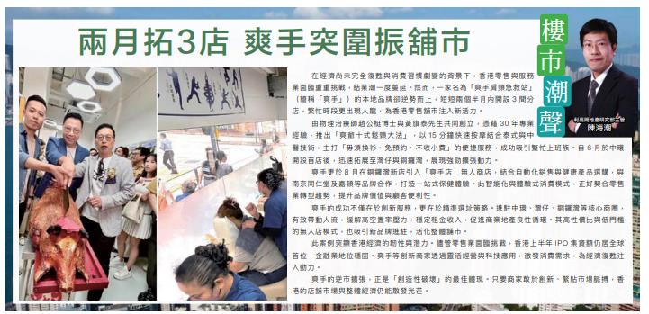 在經濟尚未完全復甦與消費習慣劇變的背景下,香港零售與服務業面臨重重挑戰,結業潮一度蔓延。然而,一家名為「爽手肩頸急救站」(簡稱「爽手」)的本地品牌卻逆勢而上,短短兩個半月內開設3間分店,繁忙時段更出現人龍,為香港零售舖市注入新活力。