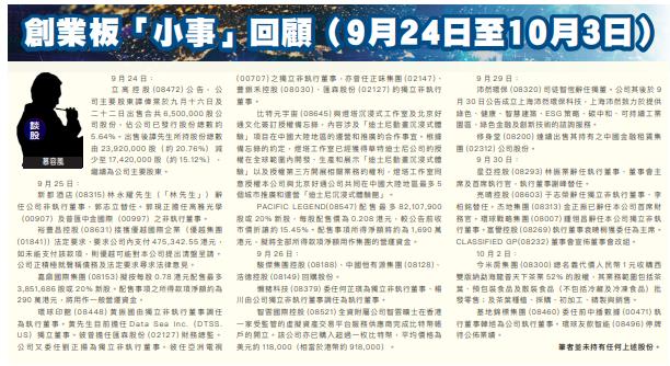 慕容风:創業板「小事」回顧(9月24日至10月3日)