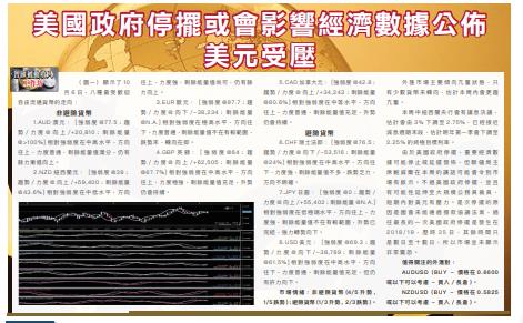 由於美國政府停擺,重要經濟數據可能停止或延遲發佈,但聯儲局主席鮑威爾在本周的講話可能會令到市場有啟示。不過美國政府停擺,並且有可能性延伸至大規模公務員裁員,短期內對美元有壓力。是次停擺的原因是國會未能通過撥款協議法案,過往最長的一次美國政府停擺是發生在2018/19,歷時35日,其餘時間只是數日至十數日,所以市場並未顯示非常驚恐。