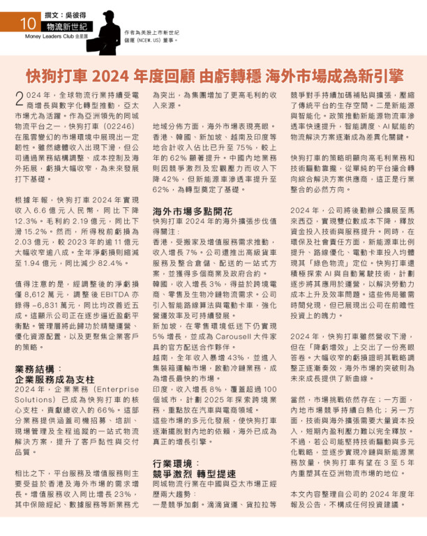 物流新世紀: 快狗打車 2024 年度回顧 由虧轉穩 海外市場成為新引擎