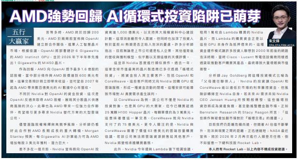 此外,Nvidia今年還與Lambda簽下租賃協議,租用1萬枚由Lambda購買的Nvidia晶片,而Lambda的購買資金正是以這些GPU本身作為抵押借來的。這種資金運作模式讓許多投資人聯想到2000年前後的網路泡沫時期,當時Cisco、Lucent等電信設備商同樣透過貸款推動客戶購買其產品,最終導致大量壞帳與市值蒸發。