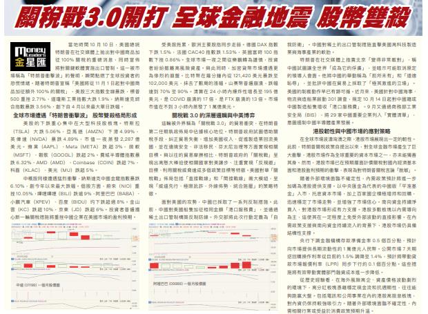 當地時間10月10日,美國總統特朗普在社交媒體上拋出對中國商品加征100%關稅的重磅消息,同時宣佈將對關鍵軟體實施出口管制。這一被市場稱為「特朗普衝擊波」的聲明,瞬間點燃了全球投資者的恐慌情緒。隨著特朗普宣稱「美國將從11月1日起對中國商品加征額外100%的關稅」,美股三大指數全線暴跌,標普500重挫2.71%,道瓊斯工業指數大跌1.9%,納斯達克綜合指數暴跌3.56%,創下自4月以來最大單日跌幅。