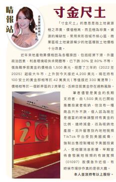近年來地產物業價格因為各種原因,包括經濟下滑、外圍政治因素、利息環境或供求問題等,已下跌30%至80%不等。俄烏戰爭前黃金的價格由1,500美元,經歷了三年的(2022至2025)超級大牛市,上升到今天接近4,200美元,現在持有100安士的黃金即相等於42萬美元(等值接近330萬港幣),價格相等於一個新界區的2房單位,反映目前黃金存在過熱風險。