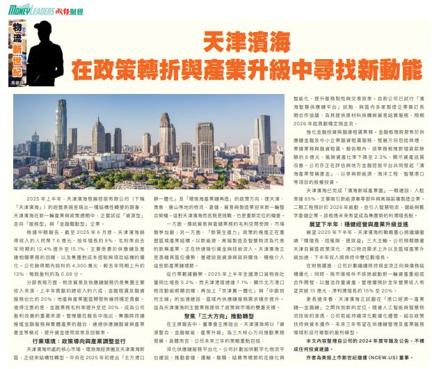 展望2025年下半年,天津濱海的戰略重心將繼續圍繞「穩增長、控風險、提效益」三大主軸。公司預期隨著天津自貿區政策深化、港口物流需求上升以及區域產業升級加速,下半年收入將保持中雙位數增長。