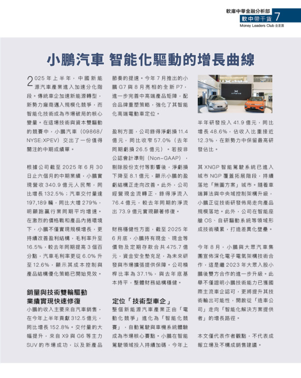 財務穩健性方面,截至2025年6月底,小鵬持有現金、現金等價物及定期存款合共475.7億元,資金安全墊充足,為未來研發與市場擴張提供保障。公司槓桿比率為37.1%,與去年底基本持平,整體財務結構穩健。