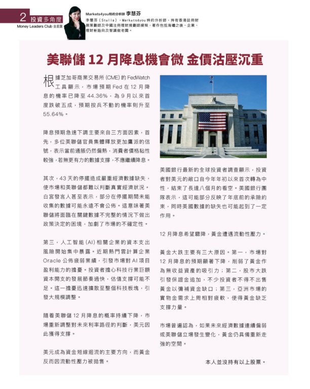 12月降息希望驟降,黃金遭遇流動性壓力。