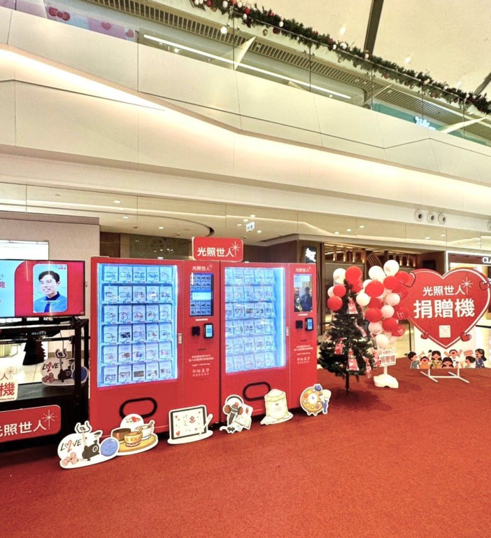 「光照世人捐贈機」今個聖誕將載譽回歸,繼續以創新的自助捐贈售賣機形式,為本地慈善機構籌募善款,並期望巿民共襄善舉,恩澤社群。今年的受惠機構包括:路向四肢傷殘人士協會、膳心連、幼聯、LOVE 21、博愛醫院 及 生命熱線。