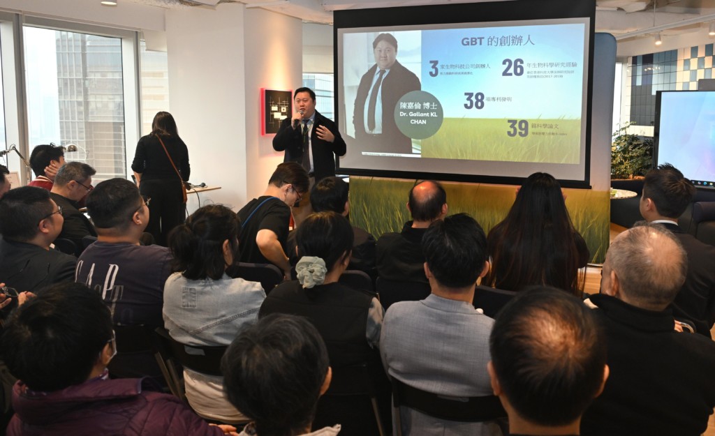 嘉倫生物科技創辦人及首席科學家陳嘉倫博士(Dr. Gallant Chan)介紹新研發產品。