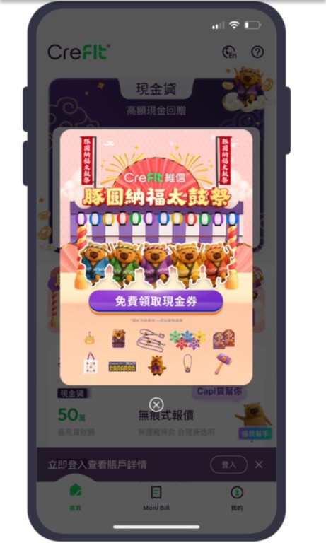 兌換現金券後,市民可解鎖「7日記賬任務」。只需透過CreFIT維信旗下智能記賬工具「Moni Bill」連續七日記錄開支,即可獲得$100現金回贈,直接存入銀行戶口。