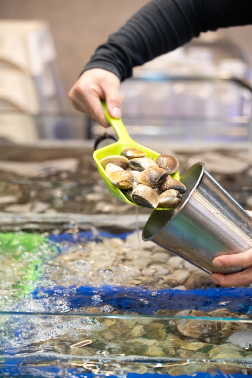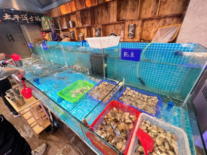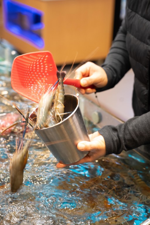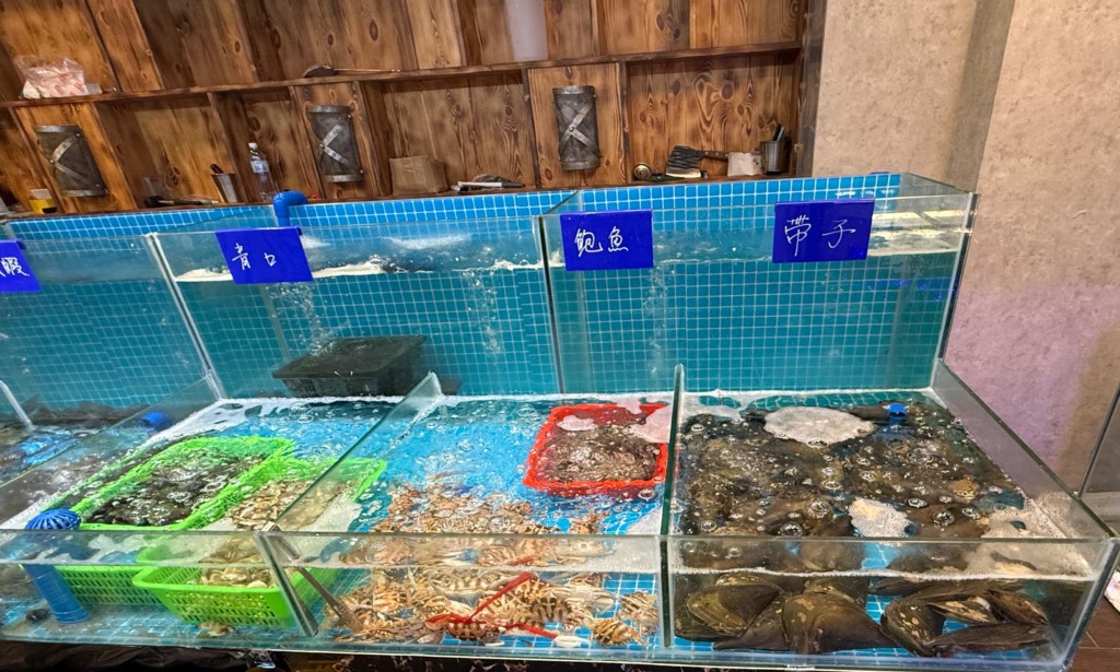 店內空間感十足,寬闊的卡座設計更適合家庭及朋友私密聚會,而店內設有海鮮魚缸養殖著每日新鮮直送的各類海鮮。食客能夠親身體驗「即叫即撈」過程,包括:大頭蝦、鮑魚、白沙蜆、大閘蟹等,最後再交由店內人員處理,便可帶回座位慢慢享用。