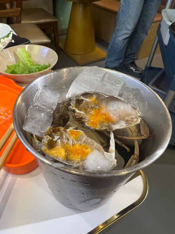 * 清蒸大閘蟹(無限任食):每隻大閘蟹均由專人精心挑選,清蒸鎖住鮮味,一拆開蟹蓋,金黃色的蟹粉甘香豐腴,蟹肉鮮甜一絲絲,回本必備!