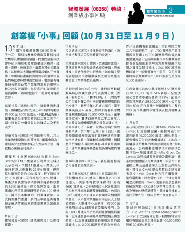 慕容風談股: 創業板「小事」回顧 (10 月 31日至11月 9 日)