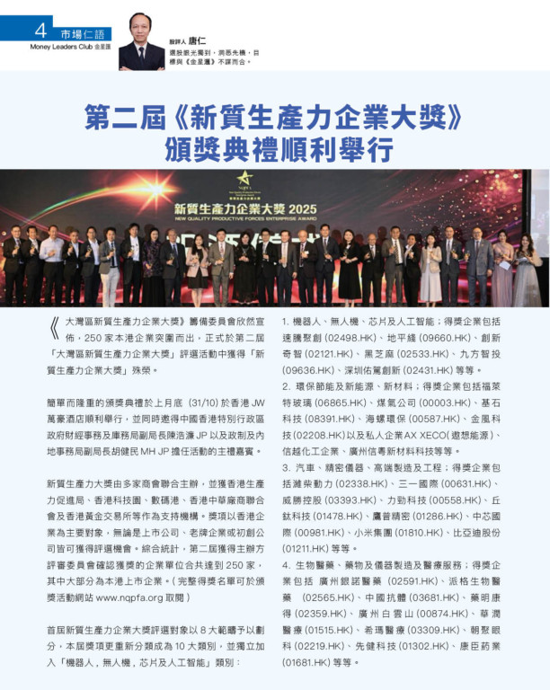 市場仁語: 第二屆《新質生產力企業大獎》 頒獎典禮順利舉行