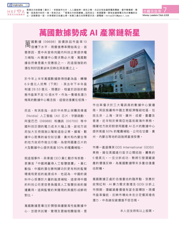 巾幗英雄傳: 萬國數據勢成 AI 產業鏈新星